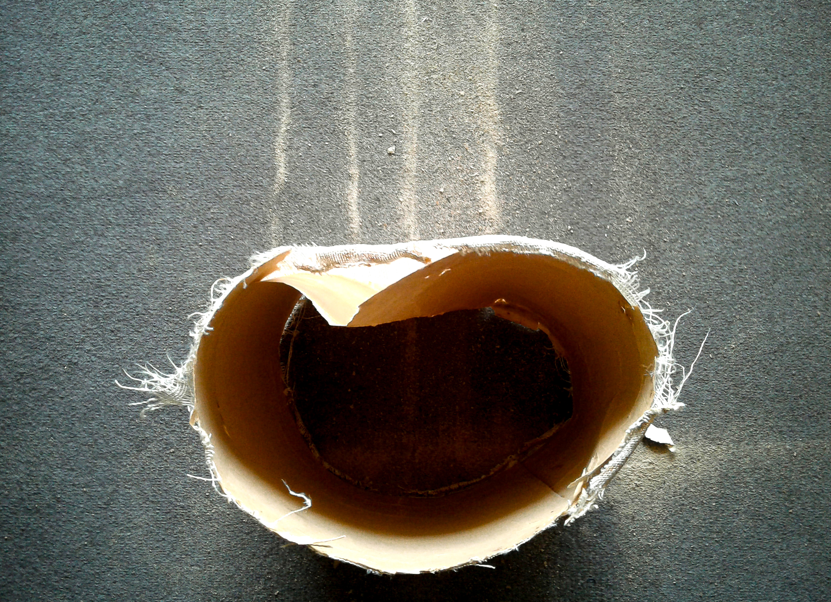 PAPEL MURAL, ASERRÍN, TABLA Y TORNILLOS SOBRE ALFOMBRA